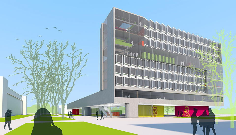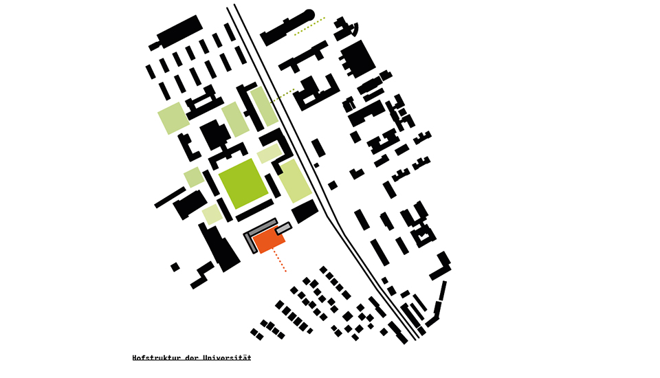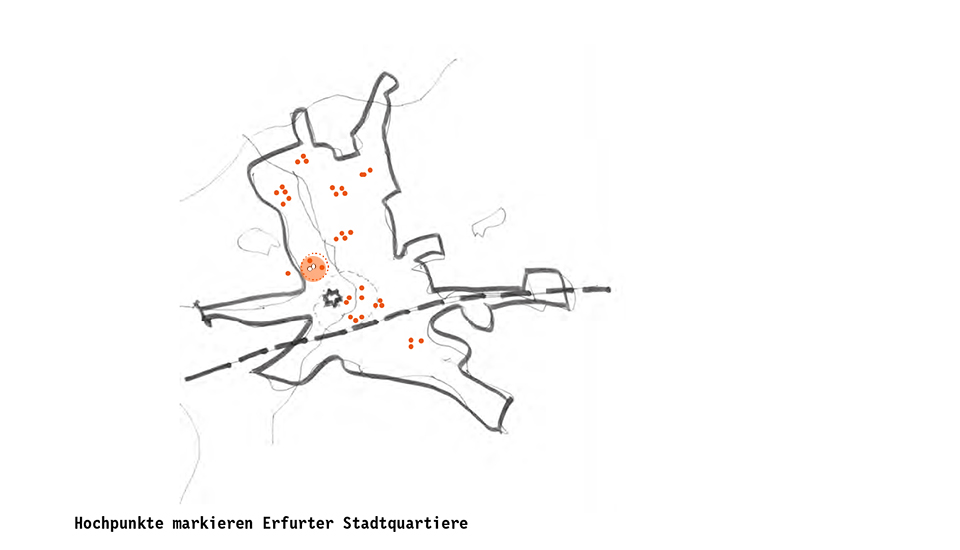 Zwei neue Hochhäuser verdichten die zwei Bestandshochhäuser der Universität zu einem städtebaulichen Markierungspunkt in der Erfurter Stadtlandschaft.