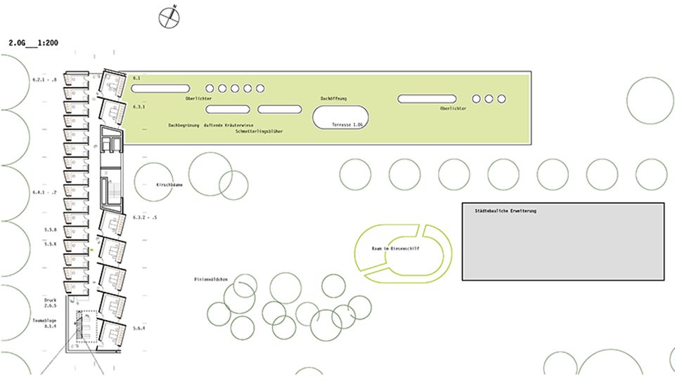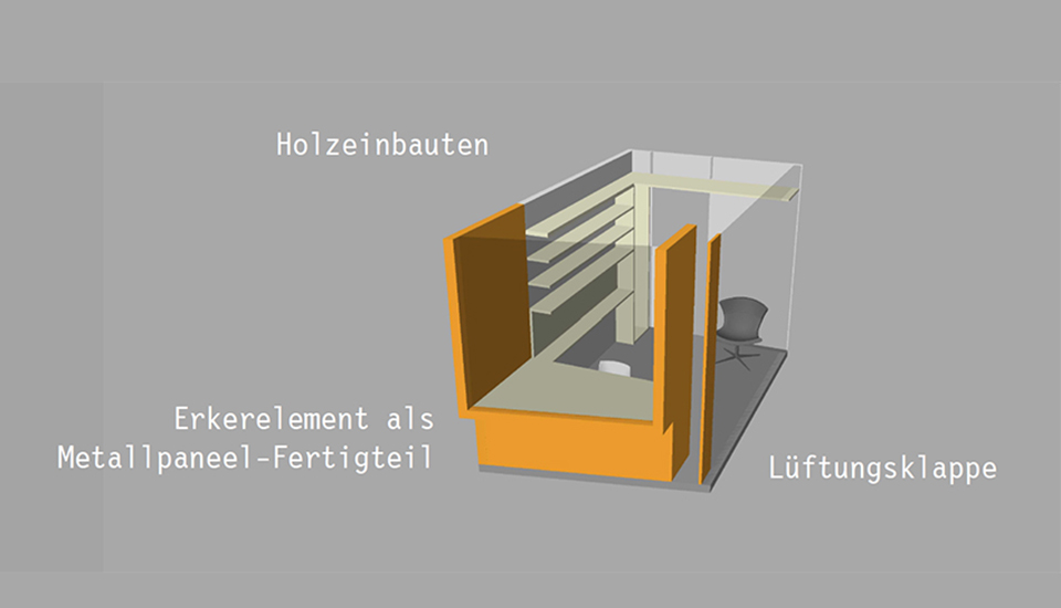 Die Einzel-Denkzimmer der Institutsmitarbeiter sind zugleich introvertiert und nach außen auf den ungestörten weiten Fernblick über das Geratal orientiert.